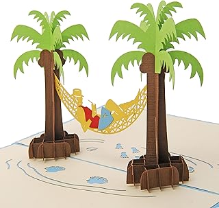 Favour Pop Up Grusskarte - Hängematte zwischen Palmen (Mann in Blau, 13x18cm)