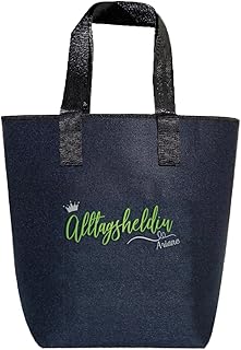 Filztasche Shopper Damen groß"bestickt" Alltagsheldin personalisiert | Filz-Tasche | Umhängetasche | Tasche blau hochwertig Gr. 44x26cm | Tasche-Henkel