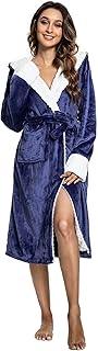 Vlazom Winter Bademantel weicher Flanell Bademantel Damen Saunamantel mit Kapuze Flauschiger Morgenmantel Lange Ärmel Hausmantel für Damen