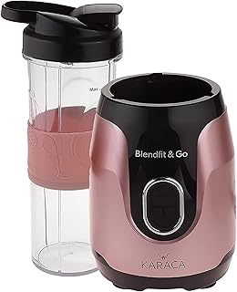 Karaca Blendfit Go Personal Personal Smoothie Mixer Rosegold, 550 W, 600 ml, Milkshake Blender, BPA frei, klebrige Füße, 4 Messer, Ice Crush- Funktion