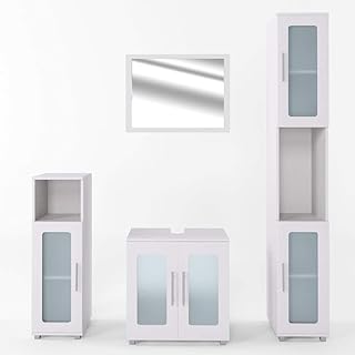 Vicco Badmöbel Set Kiko Weiß - Badspiegel + Unterschrank + Bad Hochschrank + Bad Midischrank