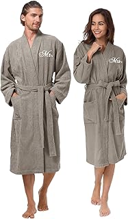 AW BRIDAL 2 Stück Frottee Damen Bademantel 100% Baumwolle Morgenmantel Herren Unisex Frottier Hausmantel Nachtwäsche