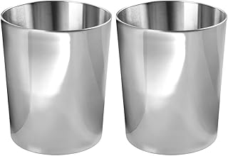mDesign 2er-Set Mülleimer – runder Abfalleimer für Bad, Büro und Küche mit ausreichend Platz für den Müll – praktischer Papierkorb aus poliertem Edelstahl – silberfarben