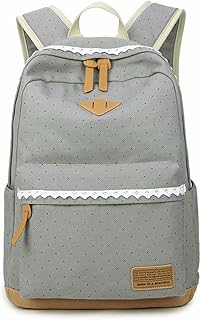 Fashion Mädchen Schulrucksack Damen Canvas Rucksack Teenager Baumwollstoff Schultasche Outdoor Freizeit Daypacks mit Schicker Lace Grau
