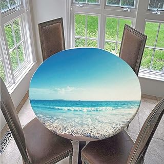 Fansu 3D Runde Tischdecke Wasserabweisende, Blauer Strand Muster Abwaschbar Garten Tischdecke rutschfest Abwischbare Wachstuch Desktop Dekorative Tuch Hotel Bankett Party (Blauer Strand,100cm)