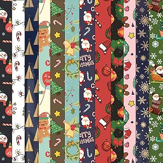 HOWAF 12 Blätter Weihnachtspapier, Geschenkpapier, jedes Blatt 74x 51 cm, 12 Weihnachts Motive - Schneemann, Weihnachtsmann, Weihnachtsbaum, Rentier