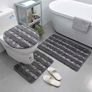Badematten Set 3 Teilige rutschfeste und Saugfähige für extra Dicke und Maschinenwaschbare Badmatten & Konturmatten & Deckelabdeckungen (grau)