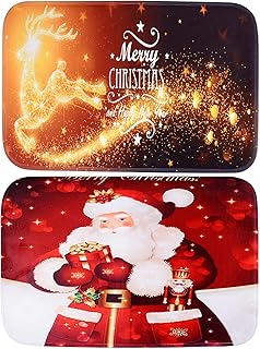 BETESSIN 2 Stücke Weihnachten Fußmatten 40×60cm, Weihnachtsfußmatten rutschfeste Weihnachtsteppich Matten Eingangstürmatte Schmutzfangmatte für Eingangstür Flur Küche Badezimmer