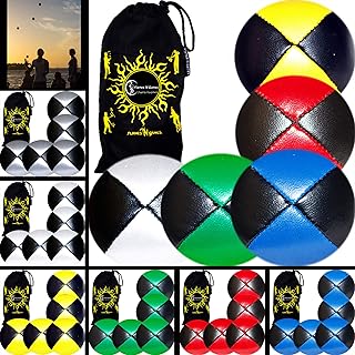 5x Pro Thud Juggling Balls (LEATHER) Professional Juggling Balls Set of 5 + Travel Bag! (Multicolour) by Flames N Games Juggling Balls