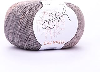 ggh Calypso / 100% Baumwolle / 50g Wolle zum Stricken oder Häkeln mit langem Farbverlauf/Farbe 002 - Rosenholz-Grau
