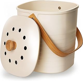 5 Liter Küchen Bio Mülleimer und geruchsdichter Komposter Eimer mit Aktivkohlefilter im Deckel - Biomülleimer Mülltonne mit Kunststoff Inneneimer - robuster Komposteimer Abfallbehälter | EINWEG. 28,99 €. Sie sparen 6,00 € (17%) Amazon-Preis ab 2022-09-22 18:00. BIO MÜLLEIMER IN HÖCHSTER PREMIUMQUALITÄT - Wir lieben den klassischen Bioabfallbehälter für Küche und Esstisch mit Deckel im Vintage Retro Look und die robuste Konstruktion der Biomüll Behälter. Unser geruchsdichter Mülleimer ist aus hochwertigem und rostfreiem Kohlenstoffstahl gefertigt, äußerst robust und wird Sie zuverlässig über einen sehr langen Zeitraum begleiten. Es muss lediglich der Kohlefilter in den Deckel eingesetzt werden, und schon ist der luftdichte Behälter