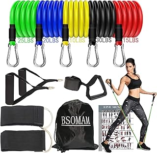 BSOMAM Resistance Bands Widerstandsbänder mit Griffen Set, Übungsbänder Workout Fitness Set - Türanker, Griffe, Knöchelriemen für Männer Frauen Krafttraining, Schlank, Heimgymnastik, Yoga, Pilates