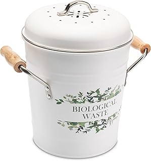 5 Liter Küchen Bio Mülleimer und geruchsdichter Komposter Eimer mit Aktivkohlefilter im Deckel – Biomülleimer Mülltonne mit Kunststoff Inneneimer – robuster Komposteimer Küche Abfallbehälter