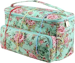 JOZEA Strickbeutel, Aufbewahrungstasche für Wolle, Fadenaufbewahrungsorganisator Tragetaschenhalter Koffer Quader mit Reißverschluss und Tasche für Stricknadeln Häkelnadeln Projektzubehör (Blume)