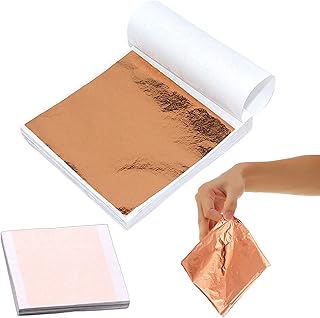 200 Blatt Blattgold Imitations Gold Blattkupfer Vergoldung Handwerk Papier Dauerhaft Einfache Verarbeitung, für Gebäude, Gemälde, DIY Kunsthandwerk, Dekoration, Möbel, Innenarchitektur—Roségold