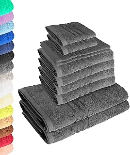 Lavea 10-teiliges Handtuchset Elena - Anthrazit, 4 x Handtuch, 2 x Duschtuch, 2 x Gästetuch, 2 x Waschhandschuh, 100% Baumwolle
