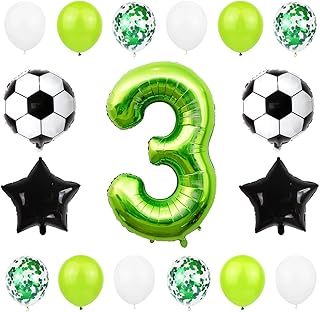 Liitata Fußball Luftballon Set 3. Geburtstag Deko 40 Zoll Zahl 3 Folienballon Grün Fussball Ballon Stern Ballon Schwarz Konfetti Luftballons für Kinder Junge Geburtstag Party Fußball Party Deko