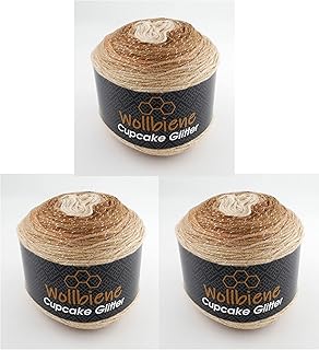 Cupcake Glitter Simli 3 x 150g Strickwolle 450 Gramm Wolle zum Stricken und Häkeln Babywolle türkische Wolle Farbverlaufswolle Glitzer (beige-braun 2150)